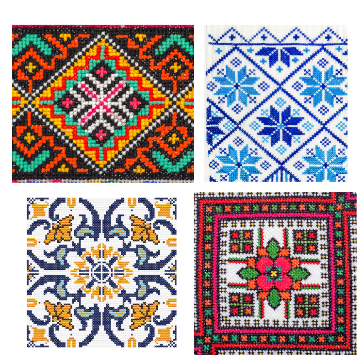 - Choose a geometric or floral cross stitch pattern that has a special meaning to you and is representative of your country or culture.
