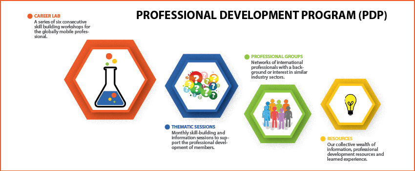 The Professional Development Program provides members with a variety of career related social learning opportunities to build their professional network, learn new career related skills, explore different career paths, and understand the local employment market.